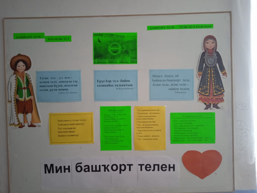 Башҡорт теле аҙналығының икенсе көнөндәге саралар "Башҡорт теле-күңелем көҙгөһө" исеме аҫтында уҙҙы. Уҡыусылар Башҡорт теле көнөнә арналған стенд эшләнеләр, башҡорт халыҡ әкиәттәренә иллюстрациялар төшөрҙөләр, стена гәзиттәре сығарҙылар. 5 класс уҡыусыһы Самиков Айнур, Мифтахетдин Аҡмулланың "Аттың ниһен маҡтайһың? " ҡобайырын яттан һөйләп, видеомарафонда ҡатнашты.
